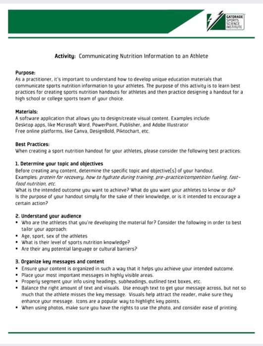 Gatorade Sports Science Institute Activity Chegg Com